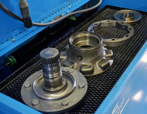 Final drive cleaning still isn’t finished yet! The parts are all thoroughly cleaned so their condition can be accurately evaluated. Some final drive parts are run through a high-powered parts washer while others are cleaned manually to remove rust or scaling. By the time this step is complete, the final drive has been cleaned and degreased inside and out.